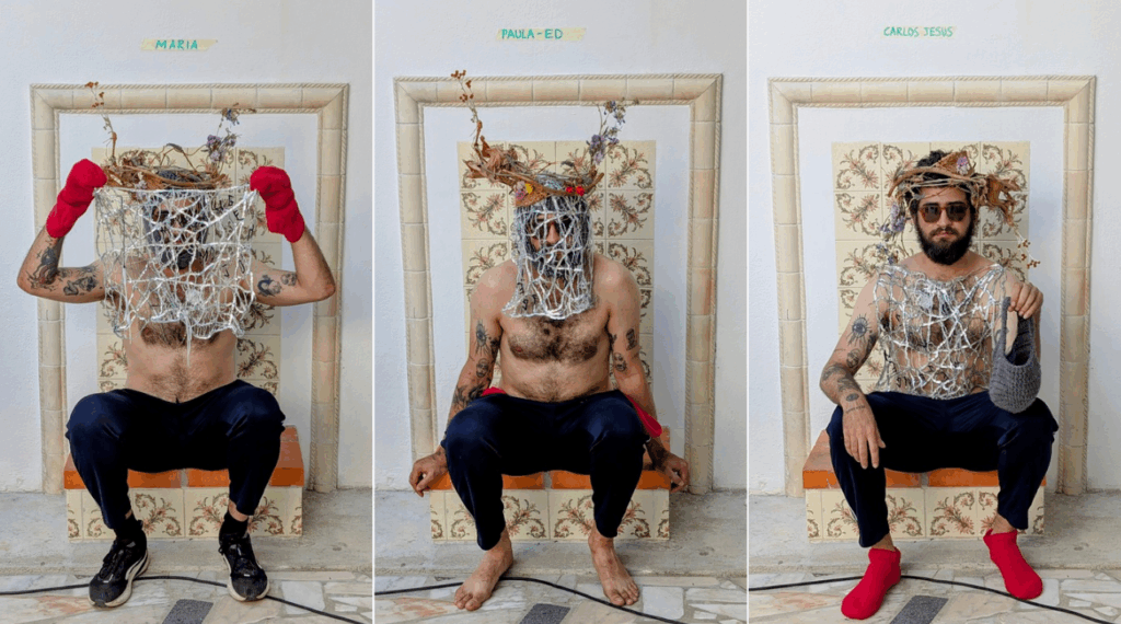 The artists, both originating from different areas of Brazil and now residing in Portugal, brought in an understanding of ‘queer’ that defies Western and imperialistic framing: that of ‘cuír‘, a South American term that proposes to be in opposition to a constant attempt to define identity and instead focuses on the constant malleability of our existence and identities. The Lisbon-based collective Afrontosas has been using this term as a way to frame their ever evolving practices and projects, merged in with their own evolving politics and identities: