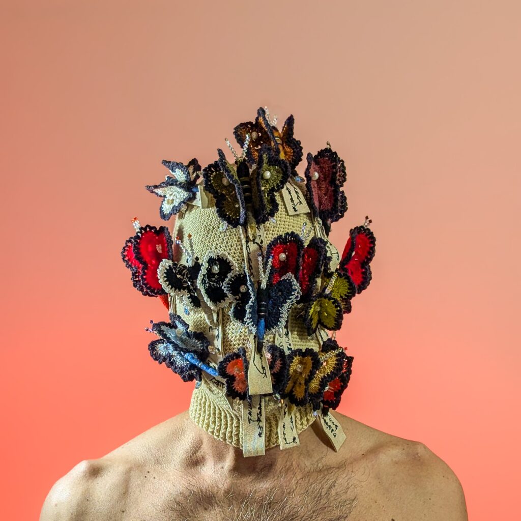 Through this process, in which I poetically confront my ghosts of loneliness, finitude, and my own butterfly-like existence, I decided to emphasise the condition of being alone, from the mummy’s head as an intermediary and unifying agent, that is, the mummy’s hooked head as a mediator and collective nurturing ground, as mediator and butterfly garden for the gathering/resting of these butterflies in their respective singular flights;