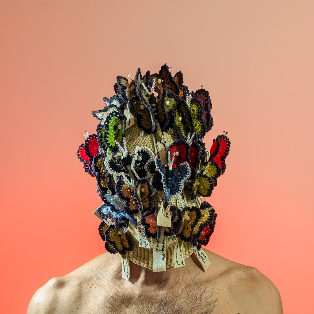 For me, coming from a six-year investigative trajectory focusing on issues of exile, departure, loneliness, abandonment, and rupture, having already delved into themes of family, mother, brother, grandmother, ancestors, and forebears, I now perhaps find myself capable of touching, weaving, and stitching within myself the broad flight of affection, of the ally, of the friend, of the goodwill that is allowed to orbit, to navigate my head from the outside, no less vibrant and colourful than the inside, colours, colours, colours, pollinators of colours.
