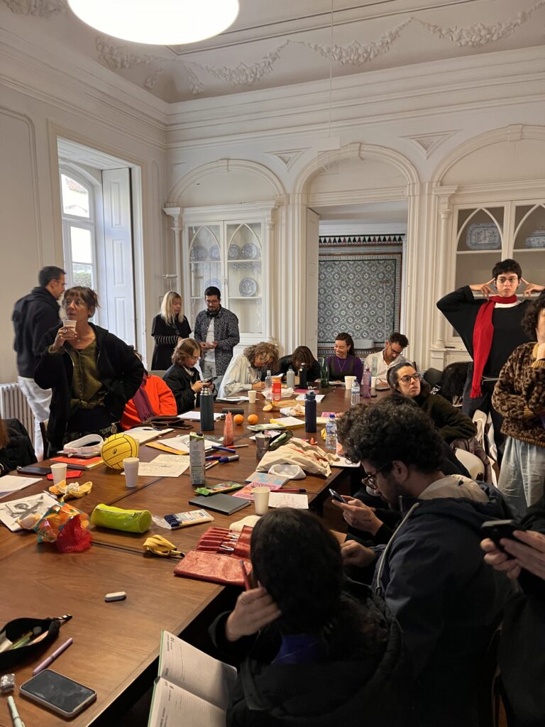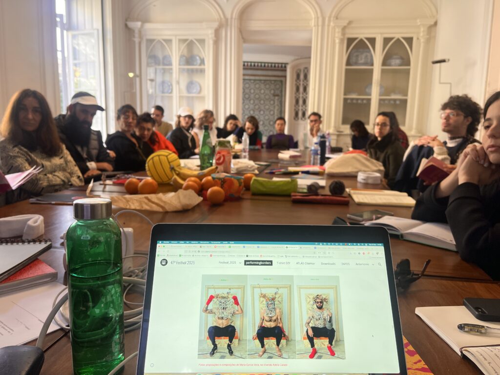 Reflexões colectivas sobre a obra Para cuatro jinetes, apresentada no Sábado dia 8 de Novembro 2025 no festival Linha de Fuga. Obra colectiva criada com os participantes do laboratório Construindo respostas críticas: sessão colaborativa para escritores e artistas, com Cláudia Galhós, Pedro Vilela e Xavier de Sousa, 9 de Novembro de 2025. Para mais informações sobre o trabalho realizado por performingborders no festival Linha de Fuga, incluindo aceder a outras comissões e reflexões, visita a página Live Art Writers Network x Linha de Fuga 2025.